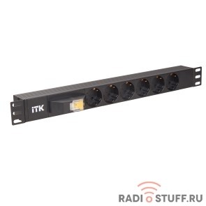Блок розеток 6 розеток, нем. ст, с автом., 10А, 1U, вилка С14, без шнура, черный, ITK